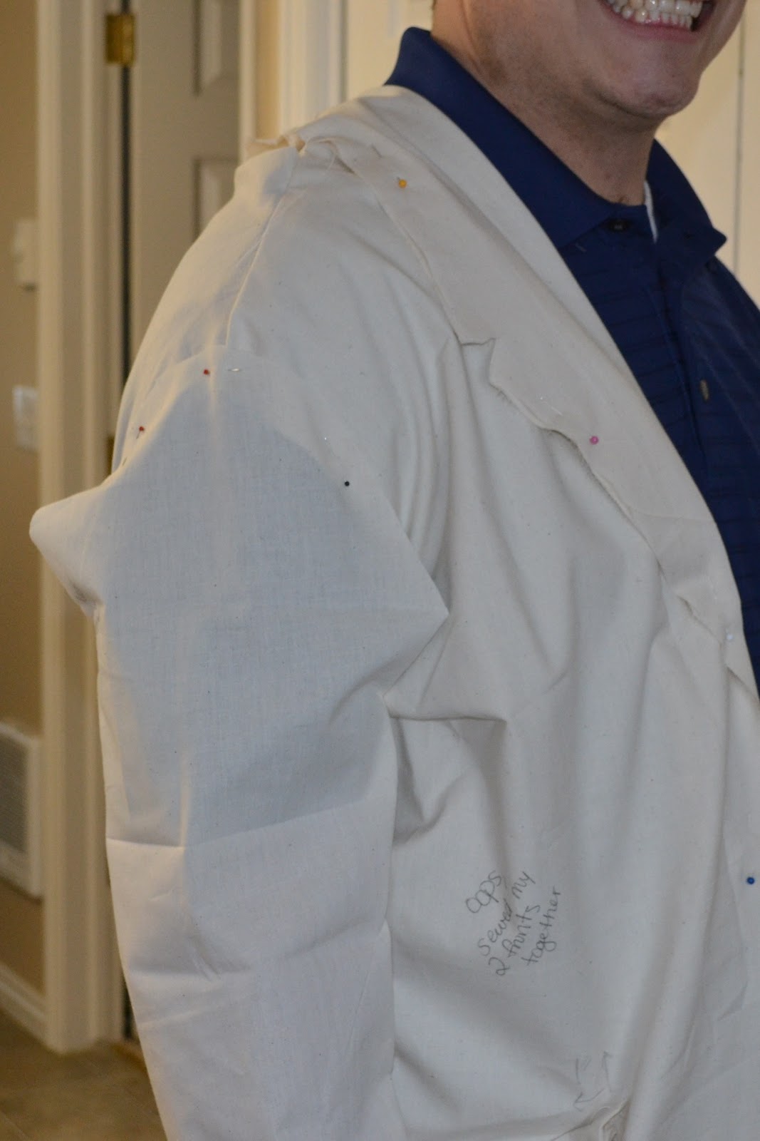 I was more cautious when I cut and sewed the wool as it was 26 dollars a yard! (On sale for 40% off; I still spent 65.00 for his coat, plus 20.00 for the static free lining.) The past two days have been an ongoing cycle of pin, baste, try on, adjust and sew while our babe napped and slept into the late hours of the night. The two hardest elements for me were the pockets with a welt as I had never sewn one before, and the collar. The pockets I am satisfied with, even proud of, since I did eventually figure them out all on my own. The collar is my frienemy. (Friend/ enemy.) I think it looks good... It just isn't as sharp and crisp as I envisioned.